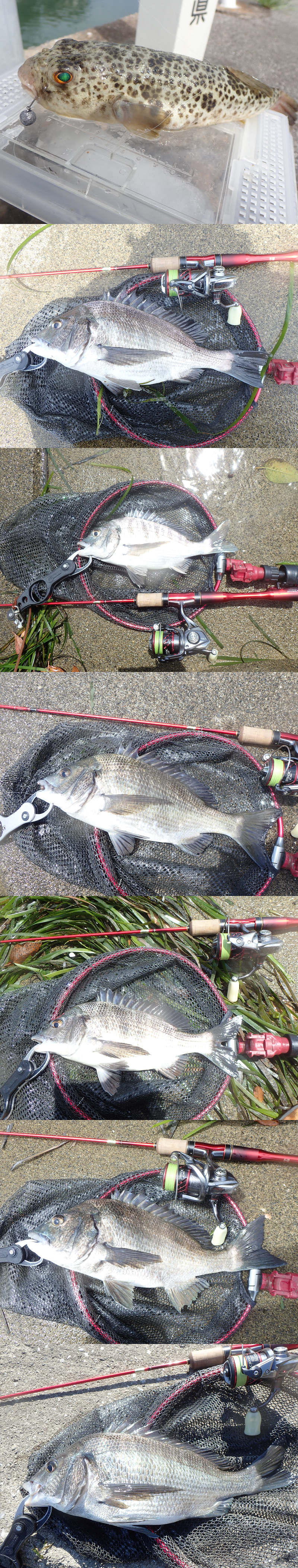 チヌ*12ヒット6キャッチ(35-45cm),フグ*1